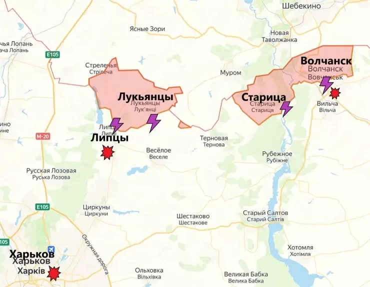 На Харьковском направлении бои идут на северных окраинах Липцев, на подступах к высотам южнее Лукьянцев, а также в Волчанске. Продвижения ВС РФ не наблюдается уже вторые сутки.