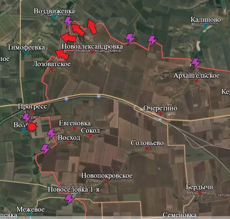 На Покровском направлении подразделения ВС РФ штурмуют позиции ВСУ на подступах к Воздвиженке. Основная проблема на пути - серьёзный опорный пункт ВСУ.
