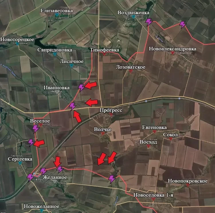 На Покровском направлении российская армия сумела выбить противника из села Тимофеевка и продолжила наступление к Ивановке. Почему для наших бойцов так важен этот рубеж? Все просто: от Тимофеевки идет прямая дорога к стратегической трассе Покровск - Константиновка и больше населенных пунктов на пути к ней нет. До важной с точки зрения логистики противника дороги по прямой осталось менее 6 км.