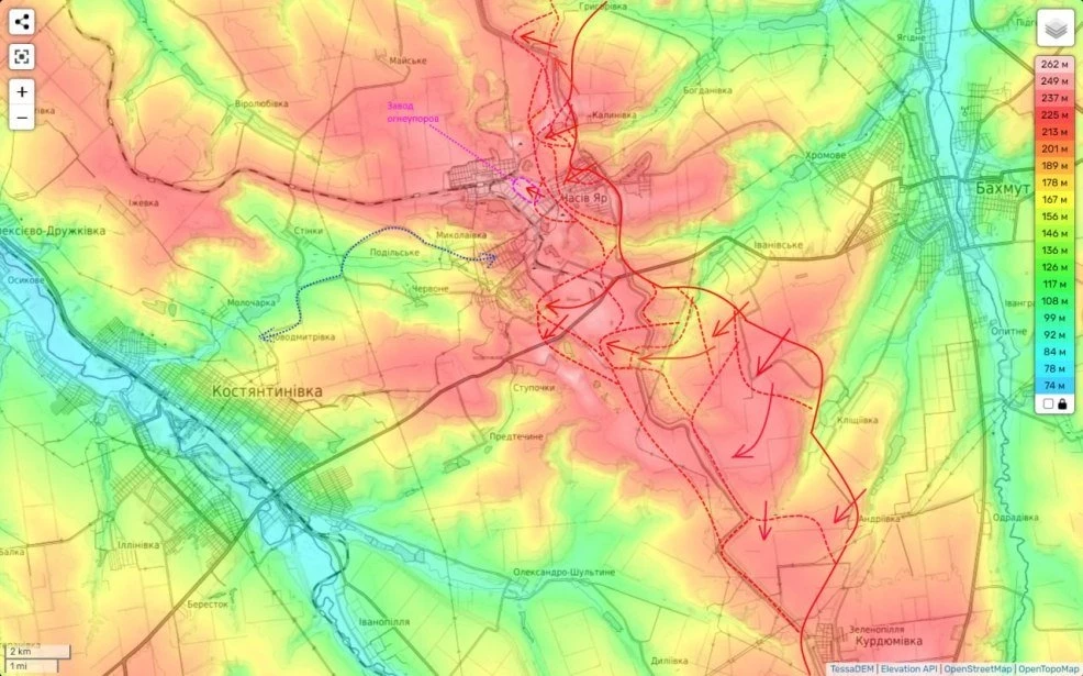Также есть данные, что мы сумели зацепиться и за южную часть микрорайона высоток, который прилегает к заводу с юго-запада. Утеря этих ключевых рубежей, напомню, ставит крест на обороне города. И по признанию украинских околовоенных экспертов вынудит ВСУ отойти за его пределы на Константиновку.