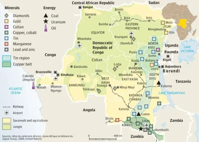 Рассматривая проблему в более широком контексте, надо помнить, что ДР Конго — не только одна из крупнейших стран Африки, но и её главная ресурсная шкатулка. Страна еще с бельгийского периода занимает первые места в мире по промышленным запасам 20-ти видов руд цветных металлов, включая хром, медь, ванадий, вольфрам, кобальт, молибден, олово.