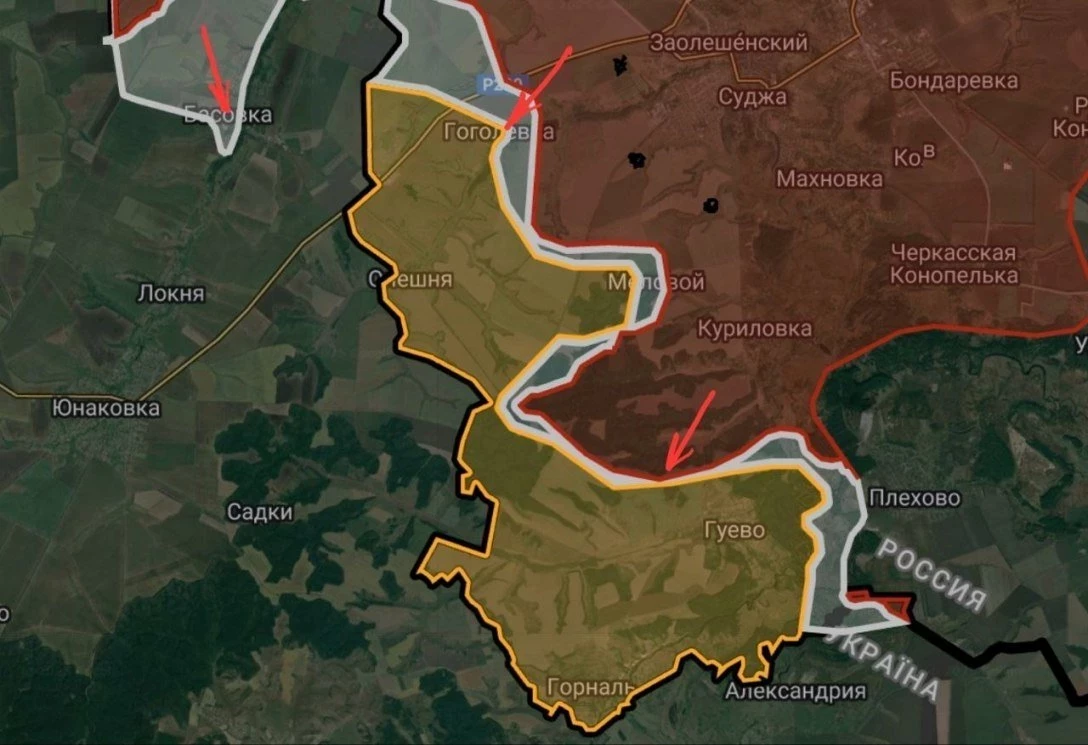 Также, по непроверенной информации, российские войска зашли на территорию Сумской области в ещё одном месте и вышли к окраинам населённого пункта Владимировка. Если информация достоверна, то продвижение наших войск вглубь Сумской области составляет до 2 км. Об этом пишет Telegram-канал Wargonzo.