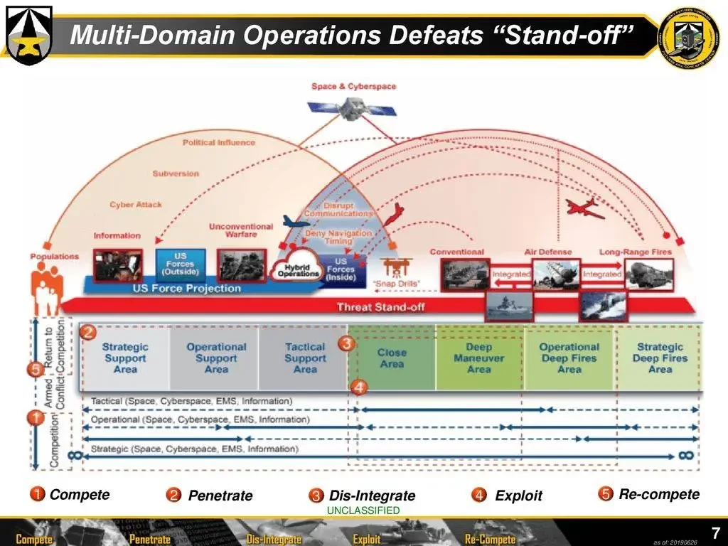 Исходя из открытых данных, ВС США стараются максимально оптимизировать работу разведывательно-ударных контуров, реализуя так называемые многодоменные силы – ранее мы говорили об этом в материале «Многодоменные силы – новый уровень интеграции видов вооружённых сил». В рамках многодоменных сил средства разведки, принятия решений и нанесения удара, входящие в разведывательно-ударные контуры, получают высокоэффективные горизонтальные связи, обеспечивающие функционирование РУК без длительных согласований на принятие решений.