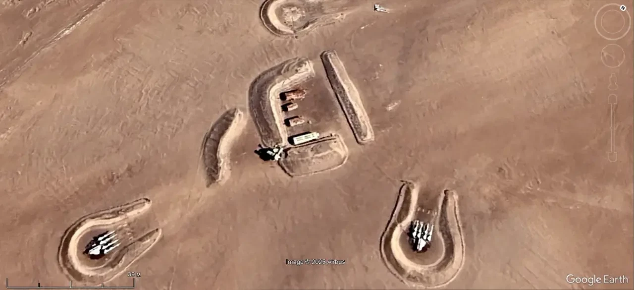 Спутниковый снимок Google Earth: позиция ЗРК С-125М на авиабазе Джамнагара. Снимок сделан в феврале 2025 года