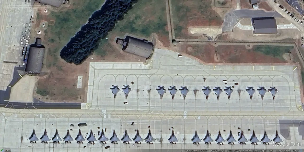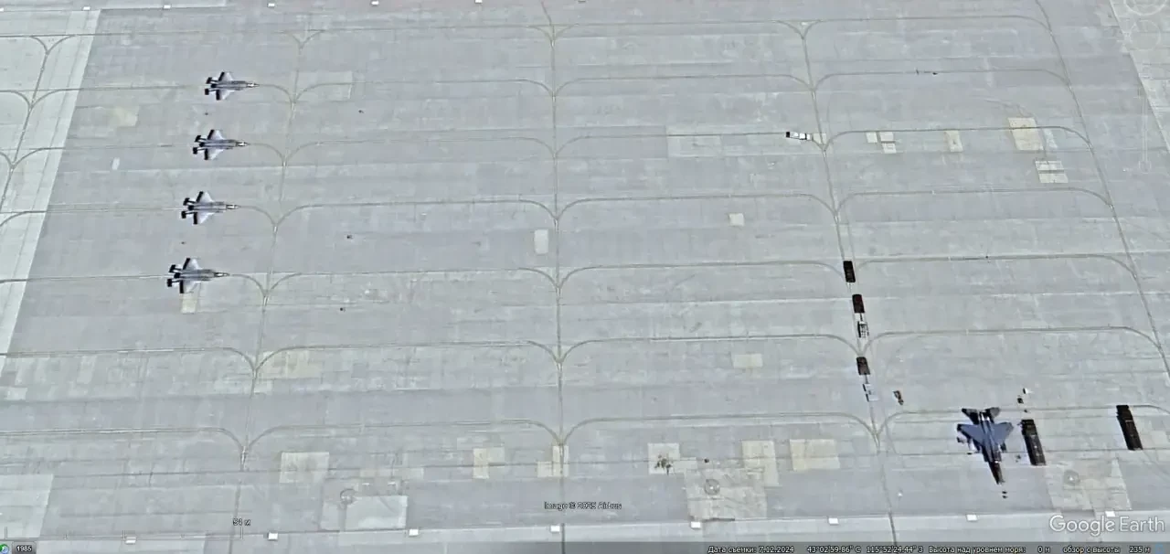 Спутниковый снимок Google Earth: истребители F-35A на авиабазе Волкель