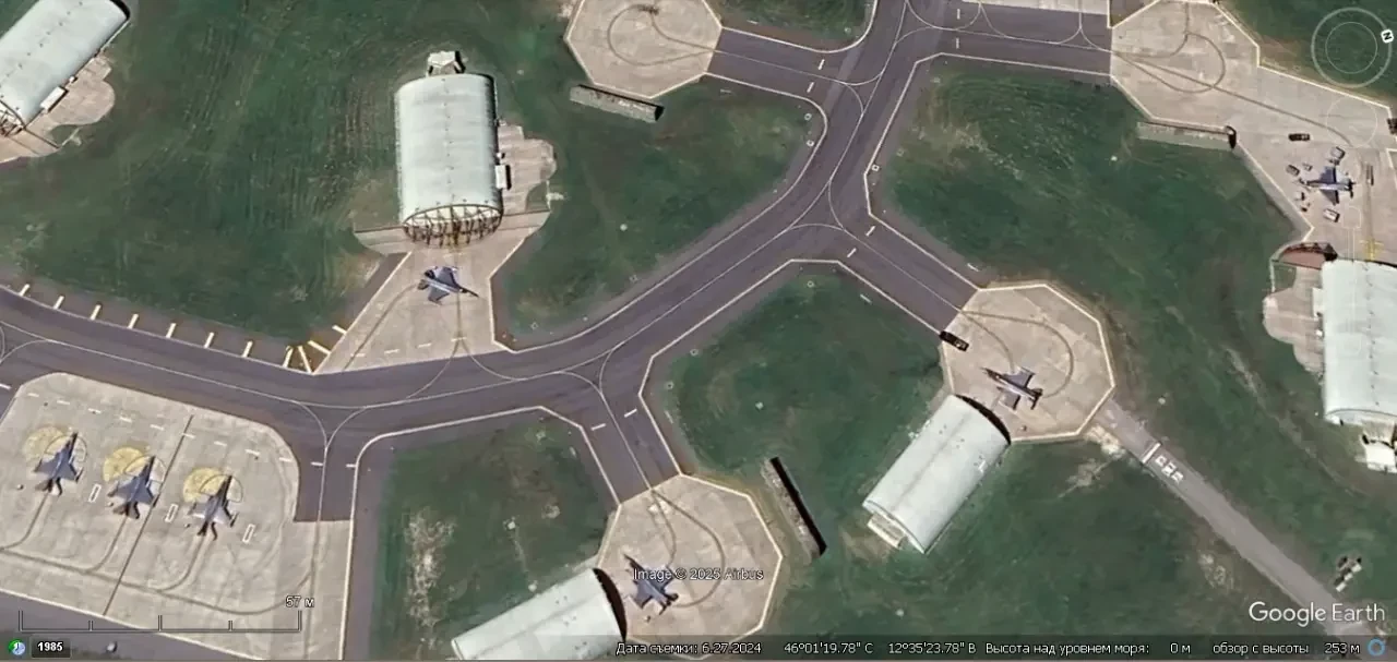 Спутниковый снимок Google Earth: истребители ВВС США F-16C/D на авиабазе Авиано