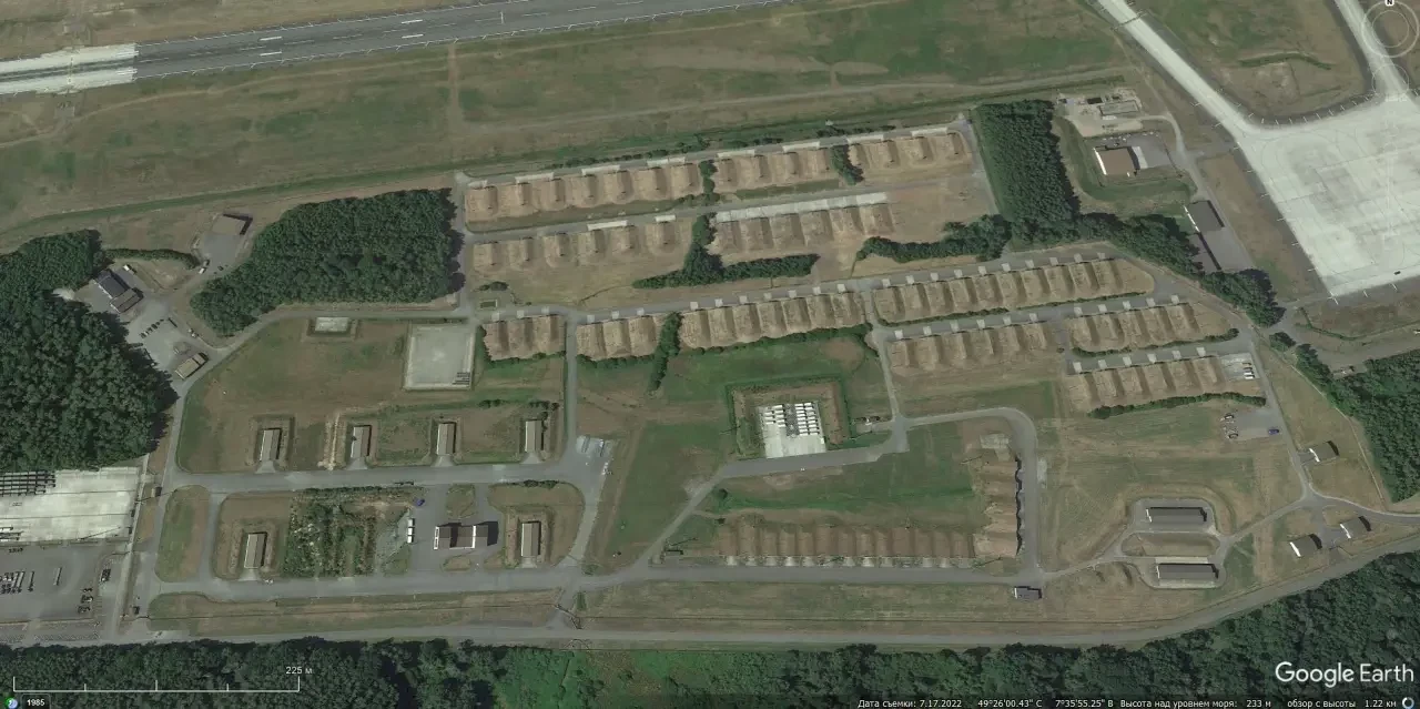 Спутниковый снимок Google Earth: хранилище авиационных боеприпасов на авиабазе Рамштайн
