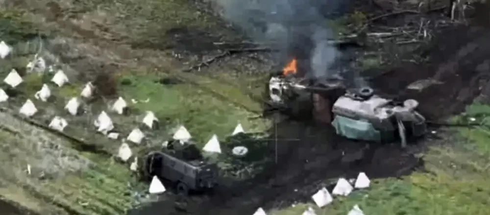 Однако в украинском Генштабе, а скорее на Банковой, не угомонились. Сообщается, что сегодня утром всушники в составе механизированной колонны фактически полезли напролом в Глушковский район Курской области, дабы высадить пехоту. Причем место, как и время, для прорыва выбрали довольно странное — днем через несколько рядов тетраидов (бетонные заграждения против бронетехники, их еще называют «зубы дракона»).