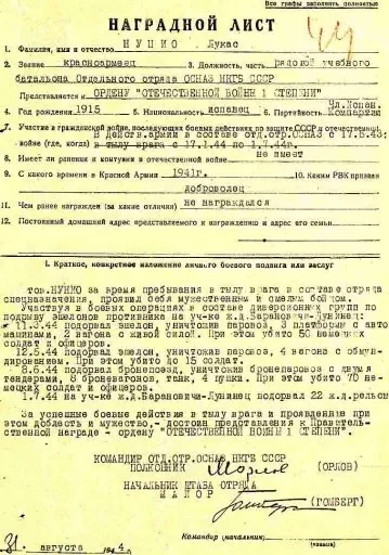 А это наградной лист сапёра Нуцио Лукаса: