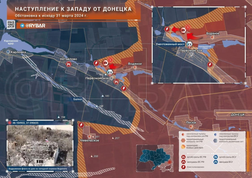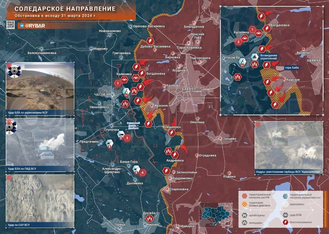 Последние новости СВО на 1 апреля 2024. Карта боевых действий на Украине на сегодня, военная сводка