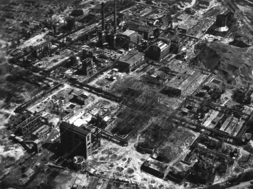 Аэрофотоснимок разрушенного завода, сделанный в мае 1945 года, после завершения боёв