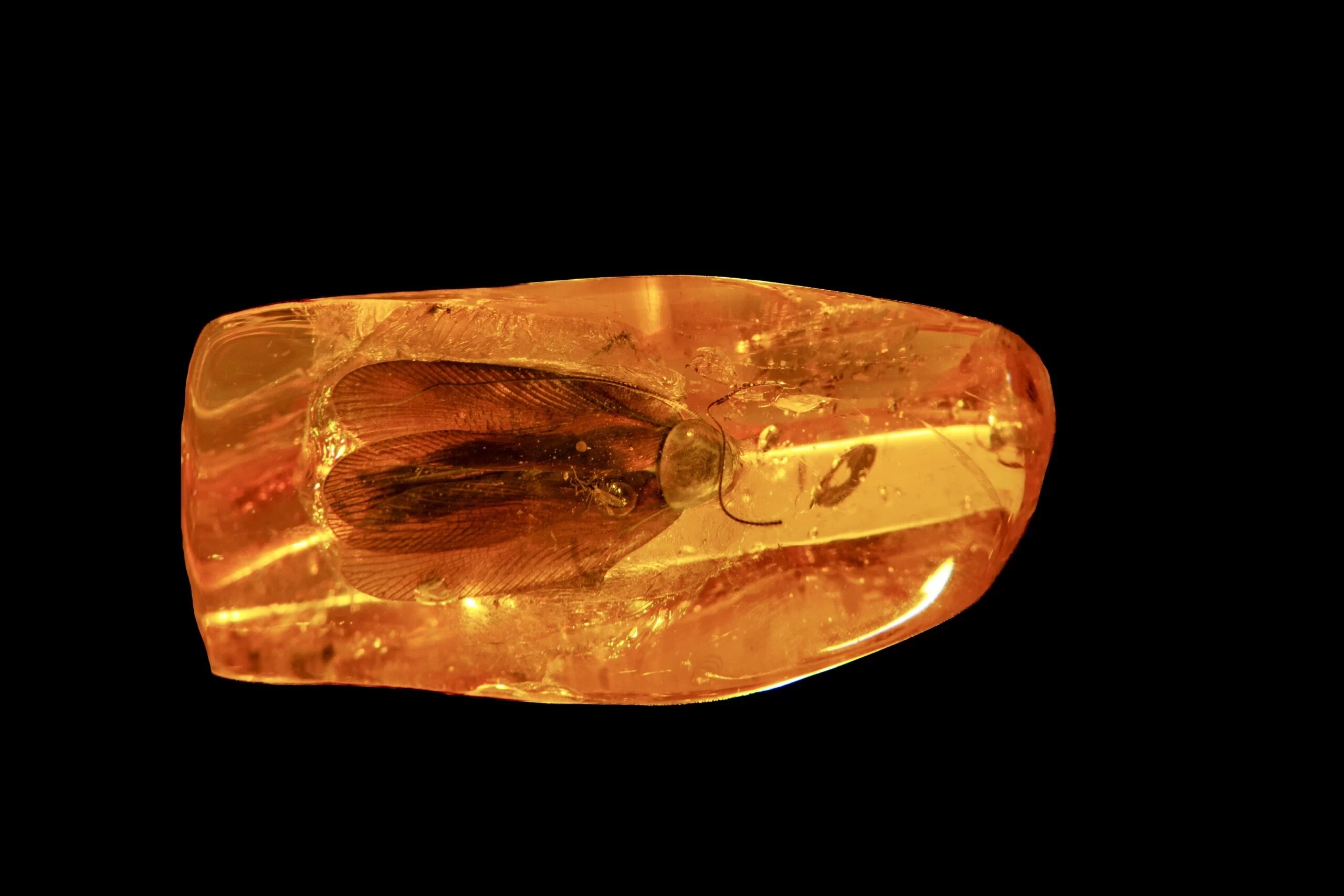 На Калининградском янтарном комбинате Госкорпорации Ростех добыт инклюз с полностью сохранившимся ископаемым тараканом. По оценкам специалистов, возраст древнего обитателя составляет 35–40 млн лет. Этот камень станет одним из главных лотов единственного в мире аукциона уникального янтаря, который состоится 2 августа в рамках VIII Международного янтарного форума AmberForum’25.