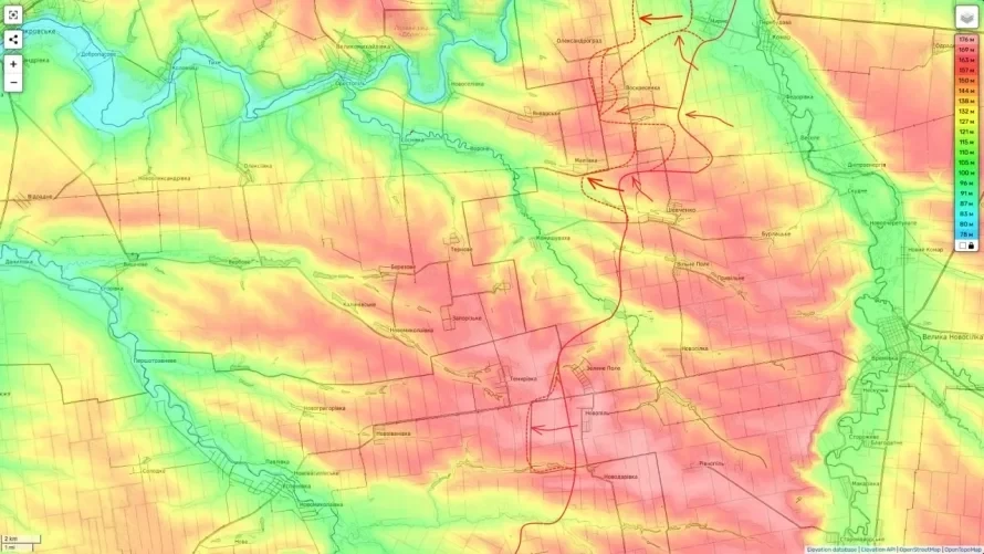 Юрий Подоляка отмечает, что командование ВС России на данном участке фронта развивает успех, направляя удар на юг - в сторону Малеевки и Великомихайловки. Первый населённый пункт находится уже на территории Днепропетровской области.