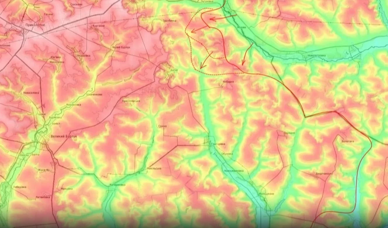 "Сейчас наши части пытаются вбивать клин на Большой Бурлук через Меловое, есть тактические успехи, вышли на Амбарное и пытаемся зайти в Хатне. Этот населённый пункт является логическим центром, взяв который мы заметно осложним логистику противника на данном рубеже и, соответственно, улучшим свои позиции перед броском на Большой Бурлук, который становится всё более вероятным", - уточнил Подоляка.
