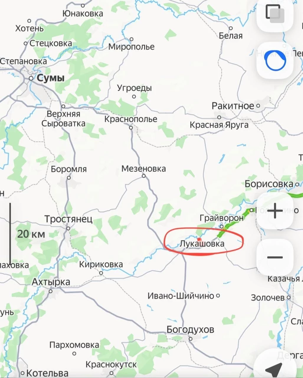 По данным военкора Тимофея Ермакова, ВС РФ завязали бои, войдя в Лукашовку Сумской области на юго-востоке Сум. По мнению экспертов, в ближайшее время Сумы окажутся сначала в клещах, а затем и оперативном окружении ВС РФ.