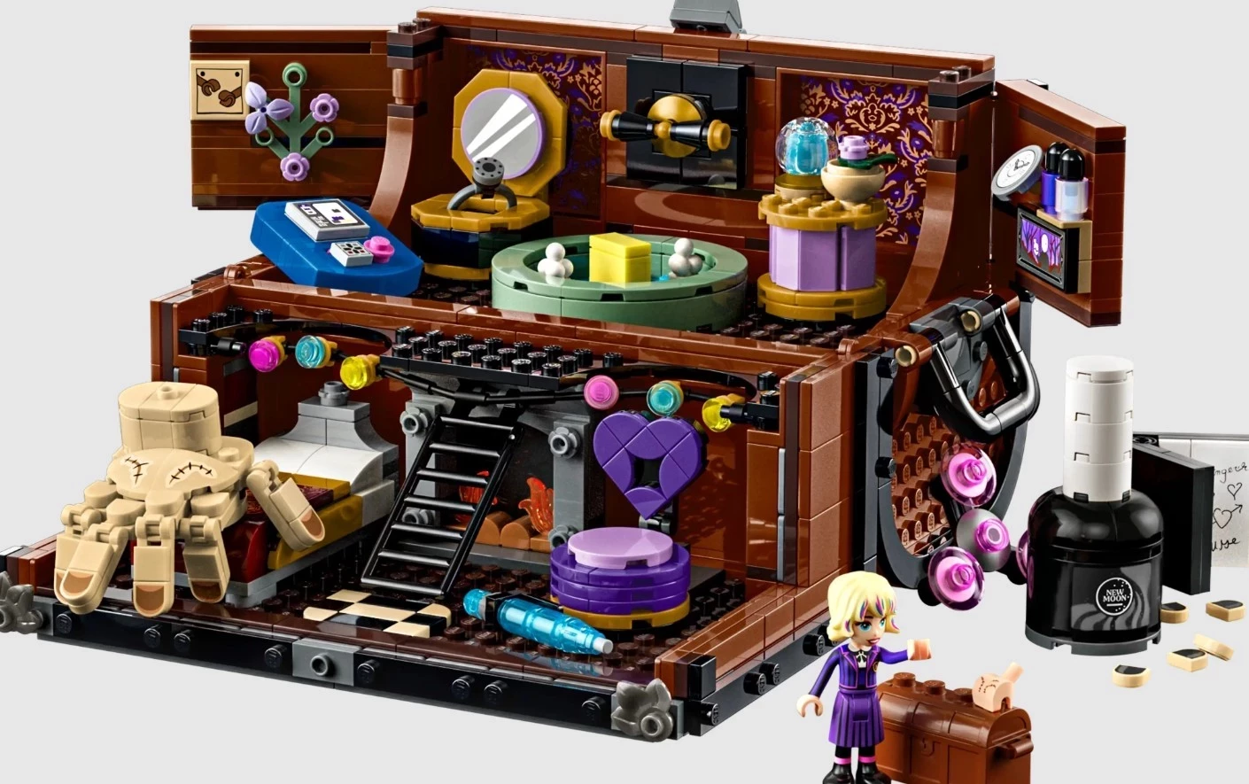 Второй набор — это интерактивная шкатулка, посвященная персонажу Вещь. Он включает 828 деталей и открывается с разных сторон. Внутри — несколько небольших зон, где «живёт» Вещь, а также много мелких предметов, связанных с сюжетом сериала. Благодаря таким элементам можно разыгрывать сцены прямо из фильма или придумывать свои истории.
