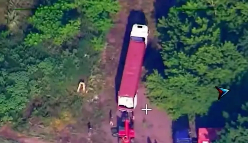 На кадрах объективного контроля показаны две большегрузные фуры, легковые автомобили и микроавтобусы, спрятанные в лесополосе. Боевики ВСУ что-то выгружают из одной из фур, когда по ним очень точно и мощно прилетает ракета ОТРК «Искандер». Над местом прилета поднялся высокий столб черного дыма, который был виден издалека.