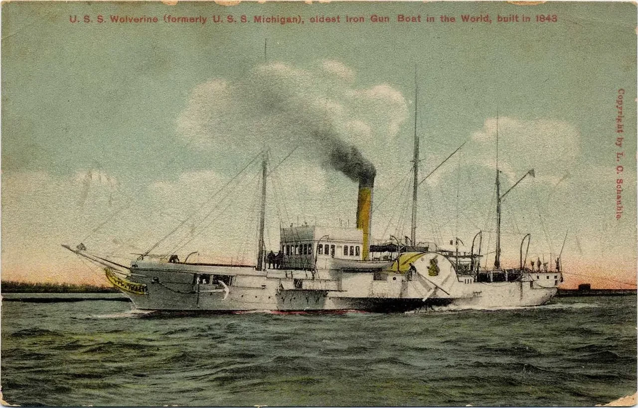 Колёсная канонерка «Мичиган» — первое американское судно с металлическим корпусом.