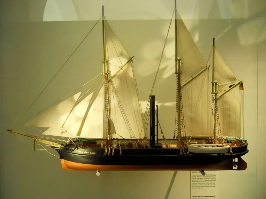 В 1848 году началась Первая война за Шлезвиг, в которой поучаствовал свежепостроенный флот герцогств, в котором самым современным кораблём была винтовая канонерская лодка «Фон дер Танн». Канонерка имела паровую машину мощностью, по разным данным, то ли 36 лошадиных сил (27 кВт), то ли 150 лошадиных сил (110 кВт). Судя по тому, что корабль с водоизмещением 120 тонн давал под парами 6 узлов, мне кажется более правдоподобным второе значение. Вооружение канонерки составляло 2х64-фунтовые пушки в носу и в корме, на вращающихся платформах, и 4х3-фунтовых гаубиц. Канонерка даже дала один бой датскому флоту, но в ходе оного села на мель и была сожжена экипажем. После войны датчане корабль подняли и после ремонта ввели в строй своего флота с названием «Сторен», но в 1862 году пустили на слом.