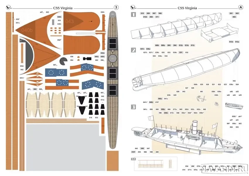 Отпечатанные детали и схема сборки броненосца «Вирджиния»