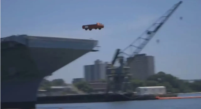 Испытания катапульт на авианосце ВМС США USS «Джеральд Р. Форд» с использованием утяжелённых «грузовиков»