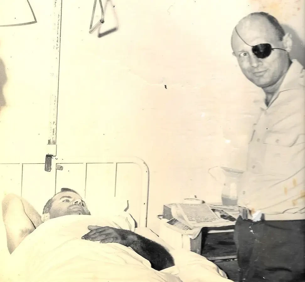 Моше Даян навещает Ицхака Шушана в госпитале