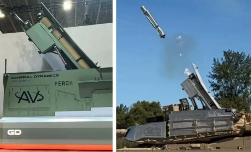 Американские компании GDLS и AeroVironment показали работу системы PERCH, установленной на танке M1A2 Abrams SEPv3 и снаряжённой барражирующими боеприпасами Switchblade для поражения сил противника.