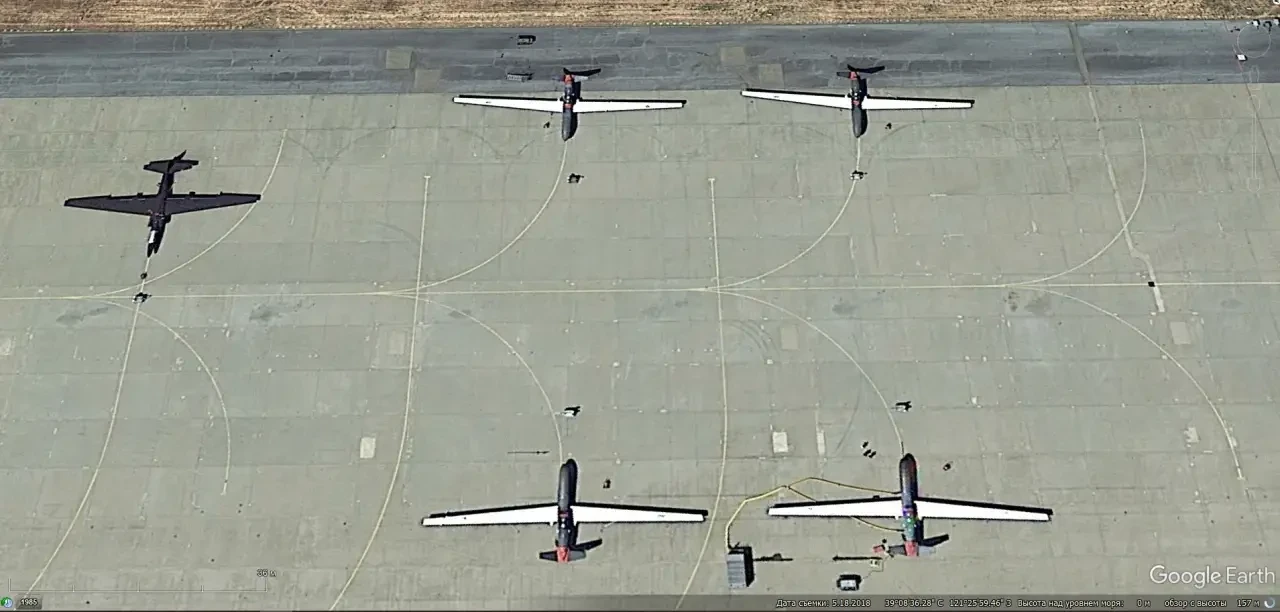 Спутниковый снимок Google Earth: БПЛА над взлётно-посадочной полосой авиабазы Крич