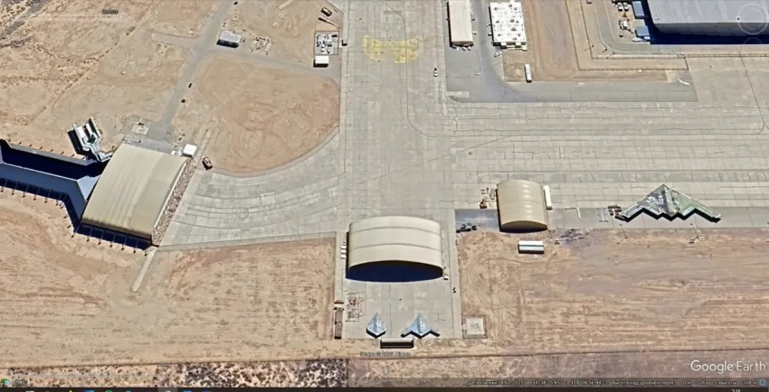 Спутниковый снимок Google Earth: самолёты Lockheed U-2S Dragon Lady на авиабазе Бил