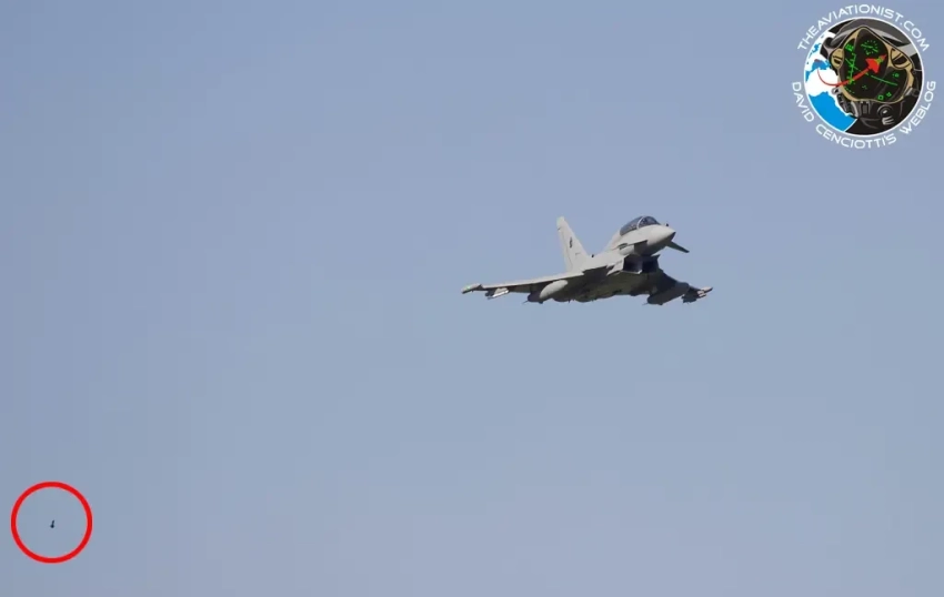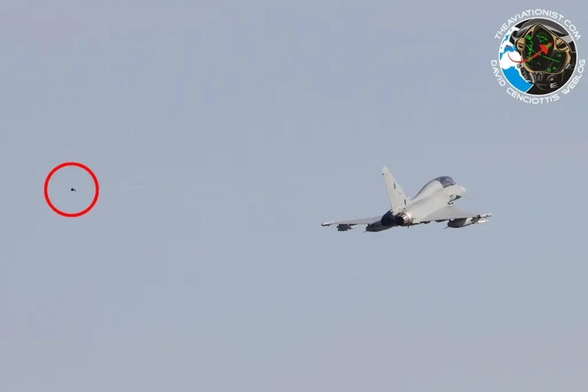 Eurofighter Tayphoon в полёте с выпущенной буксируемой ловушкой. Фото: The aviationist
