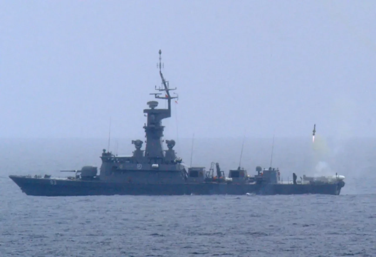 Сингапурский корвет «Вендженс» во время пуска ЗУР BARAK MR