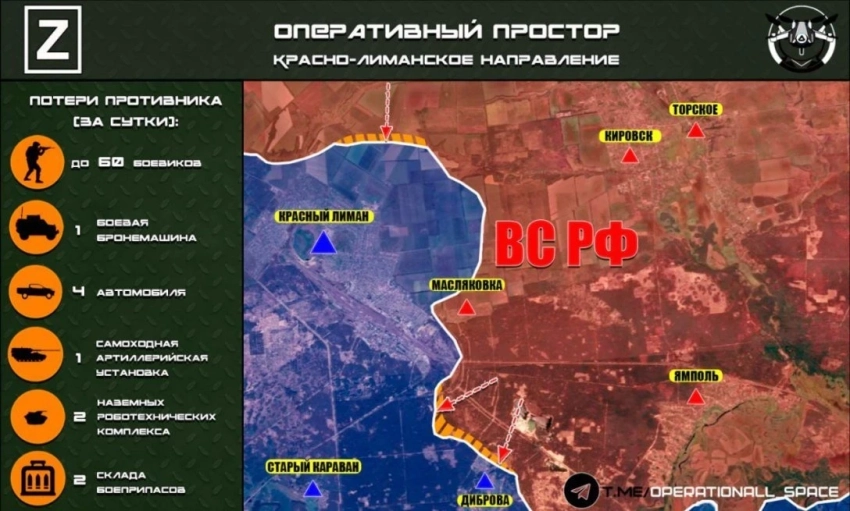 При этом украинские войска несут колоссальные потери в стремлении установить контроль над небольшой частью недавно освобождённого российской армией Купянска.