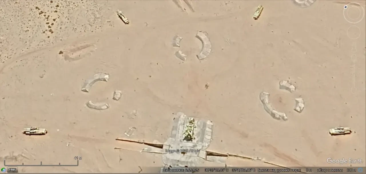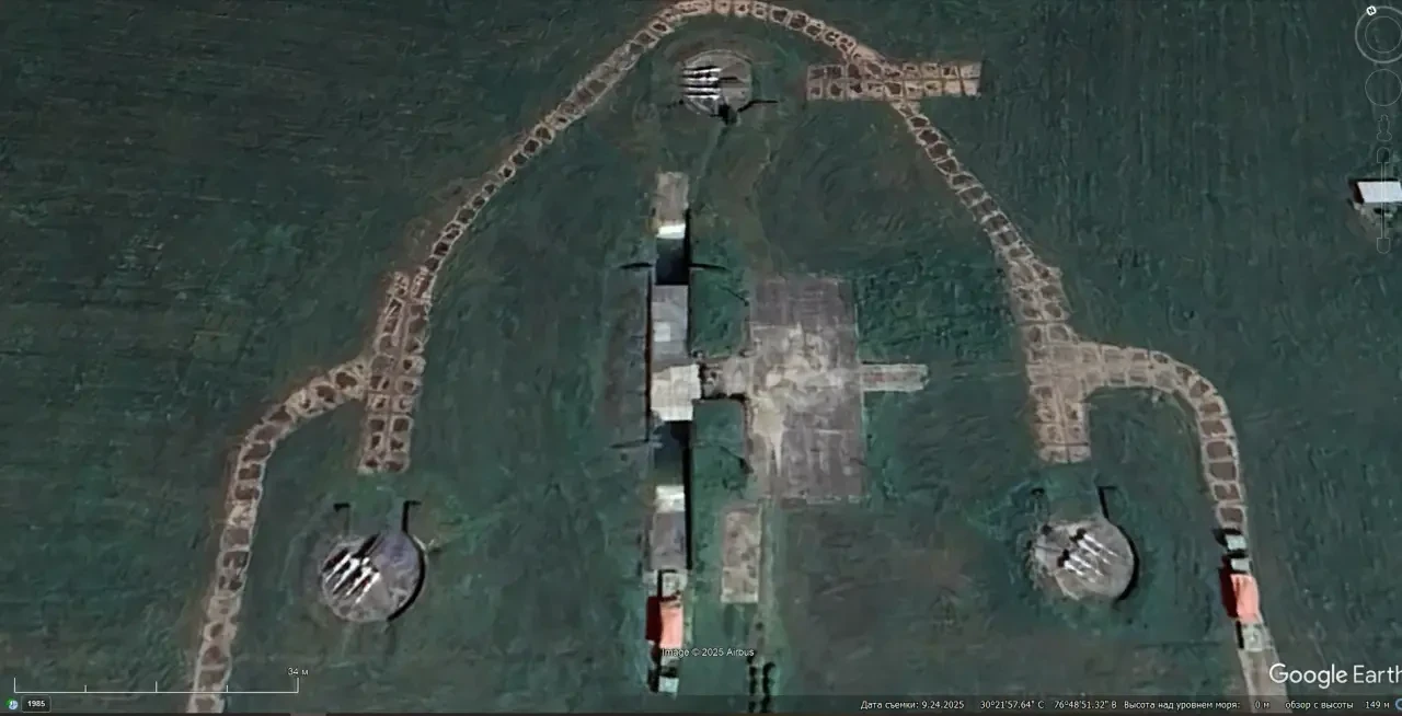 Спутниковый снимок Googlе Eаrth: позиция ЗРК С-125-2М «Печёра-2М» в 3 км западней города Исмаилия. Снимок сделан в июне 2025 года