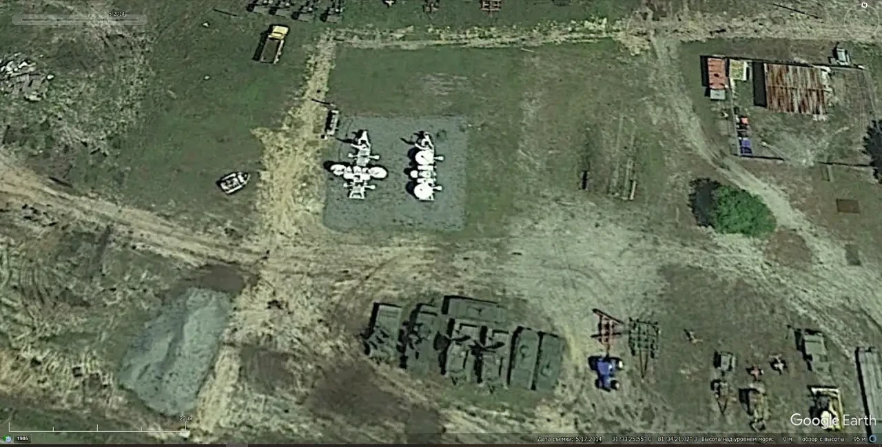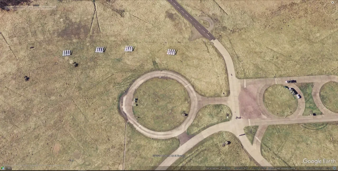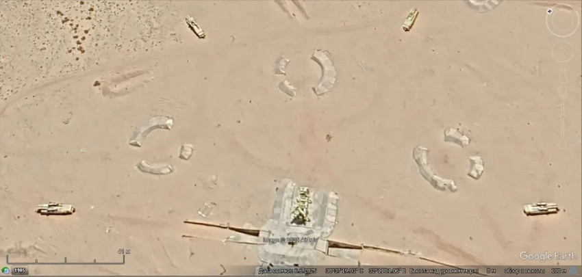 Спутниковый снимок Googlе Eаrth: макеты пусковых установок ЗРК С-125 на полигоне Спейдадам