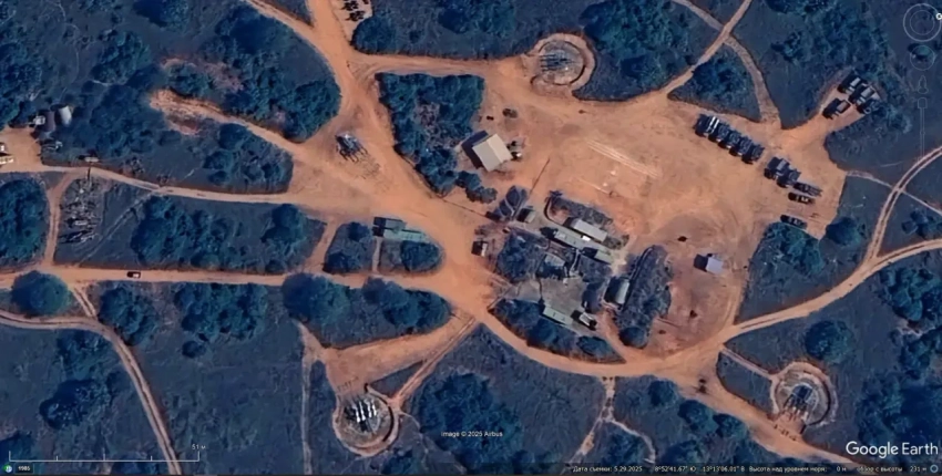 Спутниковый снимок Googlе Eаrth: позиция ЗРК С-125М на северной окраине города Лусака. Снимок сделан в марте 2025 года
