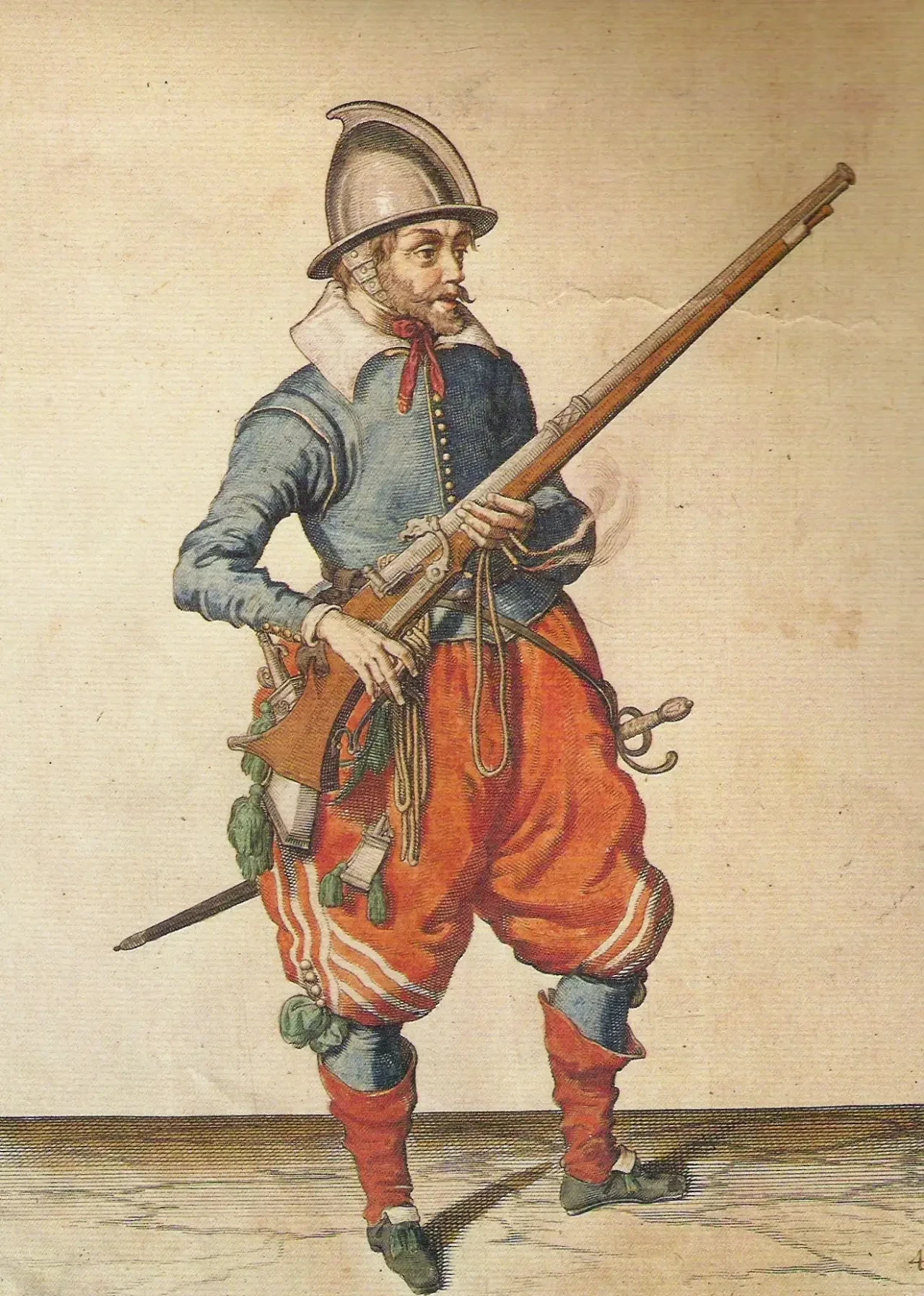 Такие щитоносцы были и у испанцев, и у англичан. Причем количество пикинеров в пехотных подразделениях медленно, но верно сокращалось, а вот число мушкетеров росло. Всё это стало следствием усиления руководящей роли государства. Зато итальянское вооружение конца XVI века — щиты, палаши, алебарды и легкие мушкеты — более годилось для локальных стычек, чем для участия в больших сражениях. И стало это следствием все еще сохранявшейся там феодальной раздробленности.