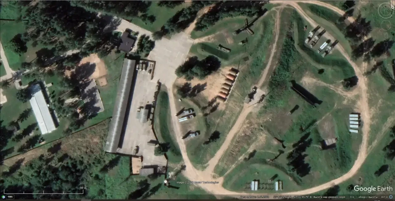 Спутниковый снимок Googlе Еarth: позиция ЗРС С-300ПТ в 40 км юго-западней Минска. Снимок сделан в августе 2022 года