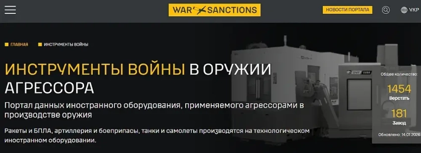 Раздел «Инструменты войны» портала War & Sanctions всего содержит данные по 1454 единицам иностранного оборудования, инструментов, запчастей, технических жидкостей, микроэлектроники и программного обеспечения, используемых 181 предприятием оборонно-промышленного комплекса России. Приведены списки оборудования с указанием стран-производителей и подробными характеристиками. Указаны названия российских предприятий, где оно применяется, и даже производимая конкретная военная продукция. Подсчет, неведомо каким образом, продолжается.