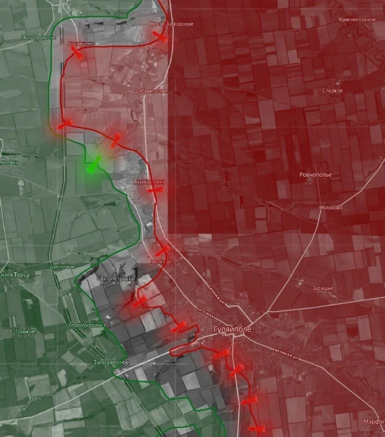 На Запорожском участке у ВСУ признают практически полную утрату Приморского, и бои в районе Речного и на подступах к Веселянке. ВС РФ повредили мост через р. Конка между Веселянкой и Григорьевкой, а также наносят удары по местам запуска дронов и огневым позициям ВСУ в Малокатериновке. Севернее Лукьяновского наши войска штурмуют Магдалиновку с южной и западной сторон. Идут бои за опорники южнее Новояковлевки. У Павловки также тяжёлое сражение, есть продвижение южнее этого села. После освобождения Белогорья ВС РФ с новыми силами начали пробиваться к Орехову. Идут бои в районе Малой Токмачки, где наши войска продвигаются вдоль южного берега Конки, а также в районе Новоданиловки.
