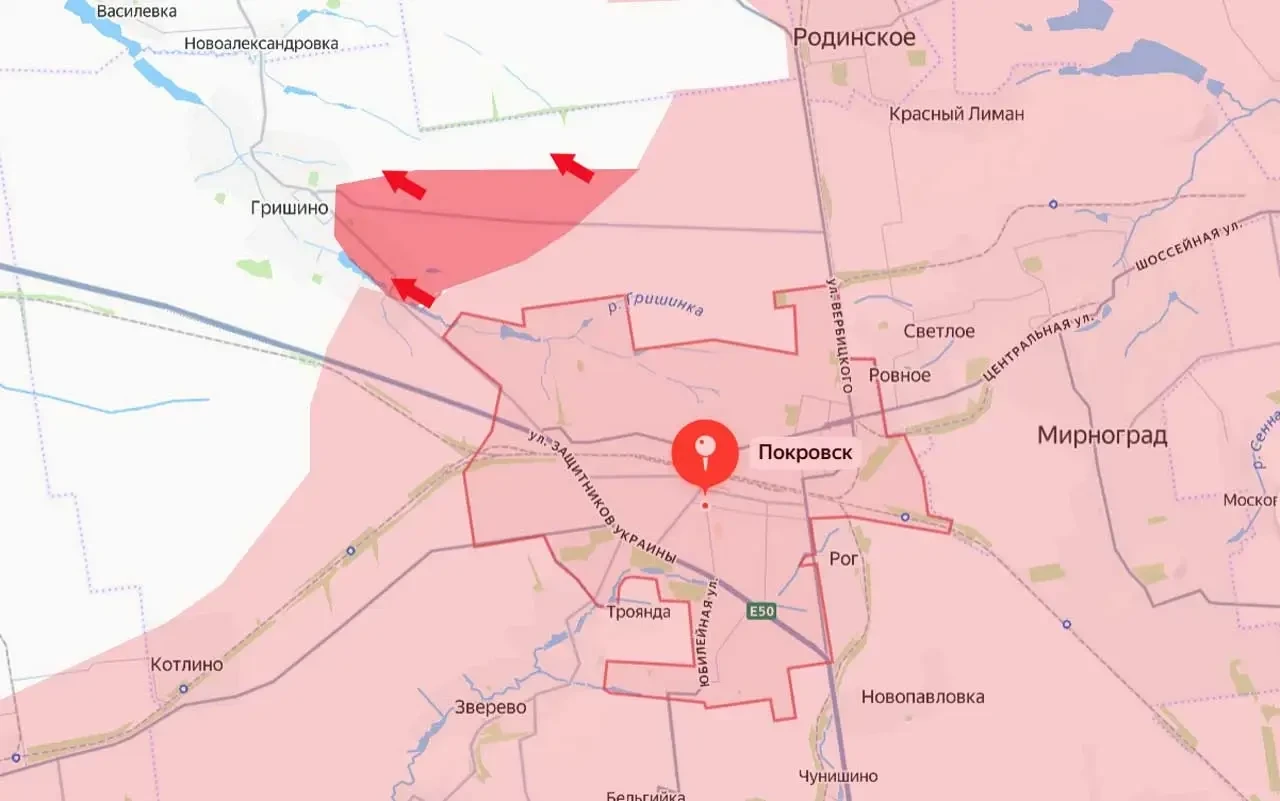 Российские войска, отразив десятки контратак противника на Покровско-Мирноградскую (Красноармейско-Димитровскую) агломерацию, перешли к новой фазе наступления. С начала суток подразделения ВС РФ продвинулись к востоку от села Гришино, одновременно с закреплением успеха в самом селе.
