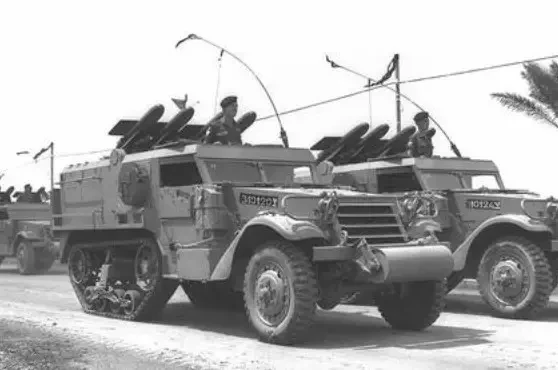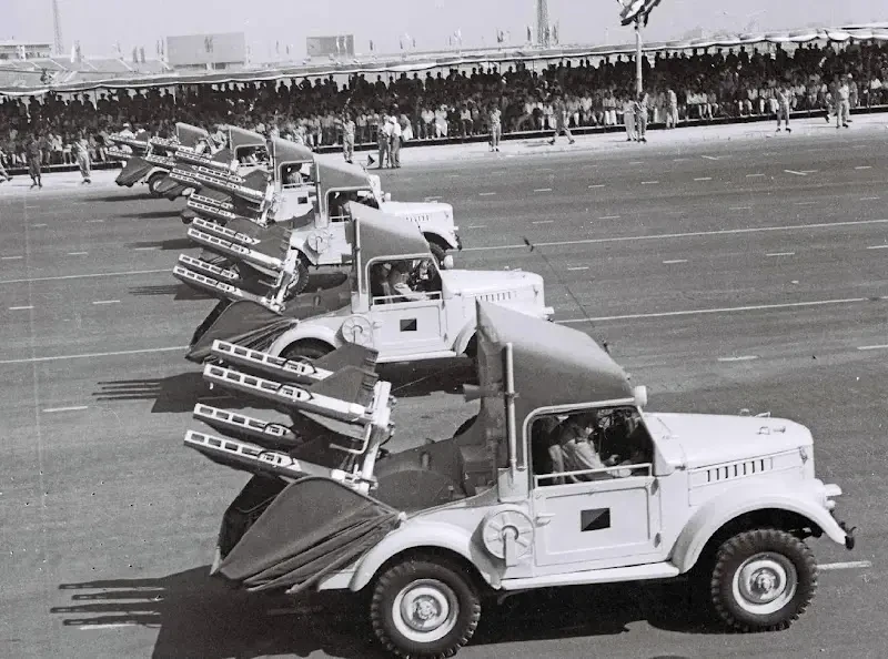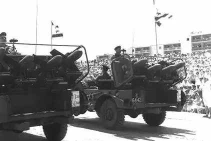 Самоходные пусковые установки 2П26 ПТРК 2К15 «Шмель» на параде в Каире в 1965 году