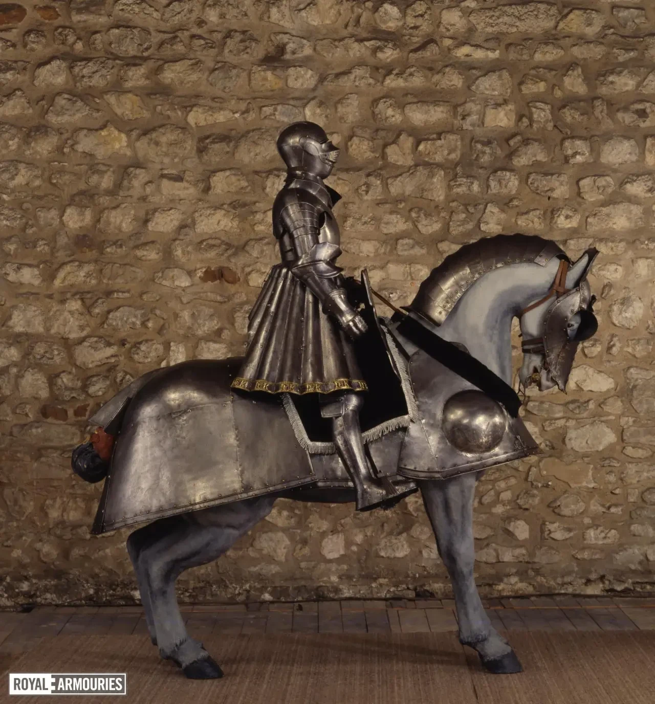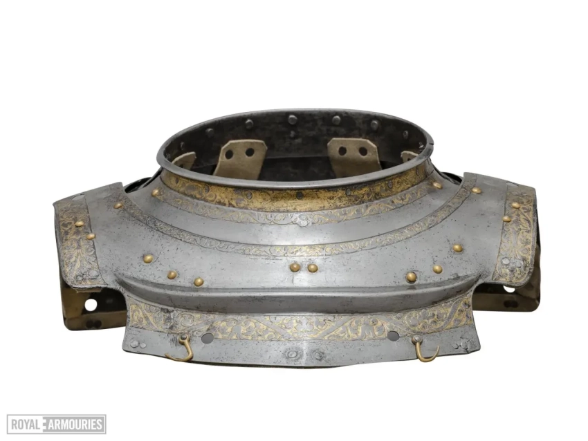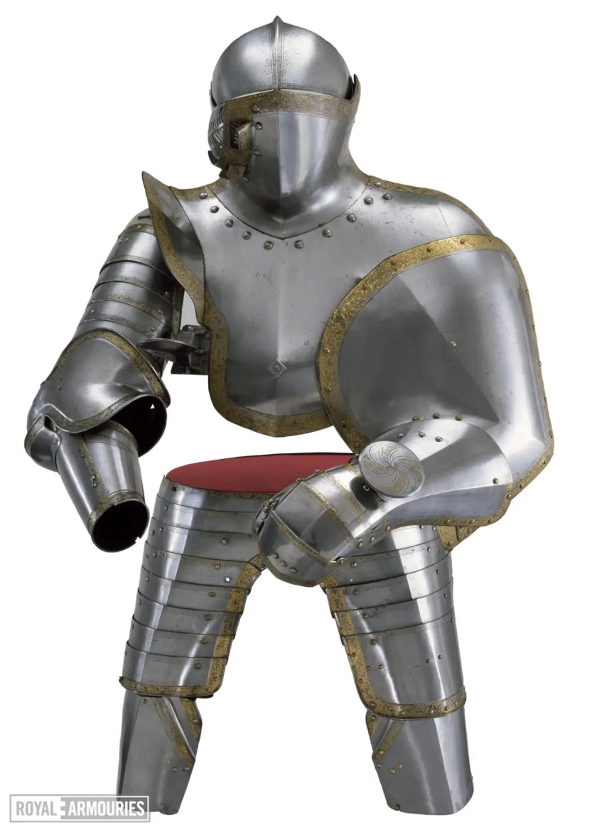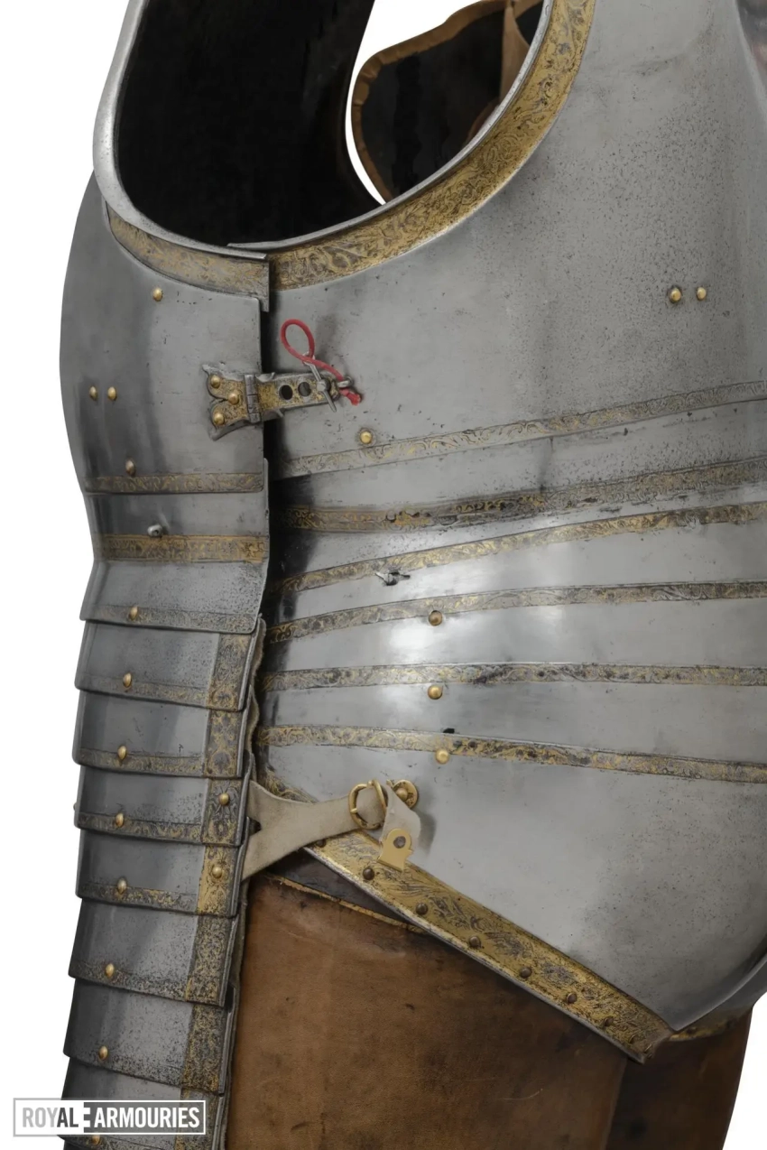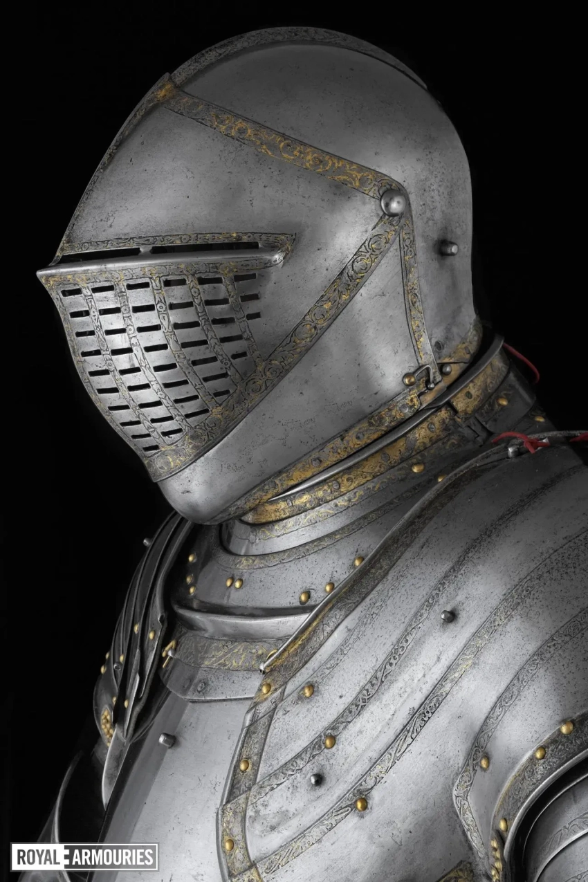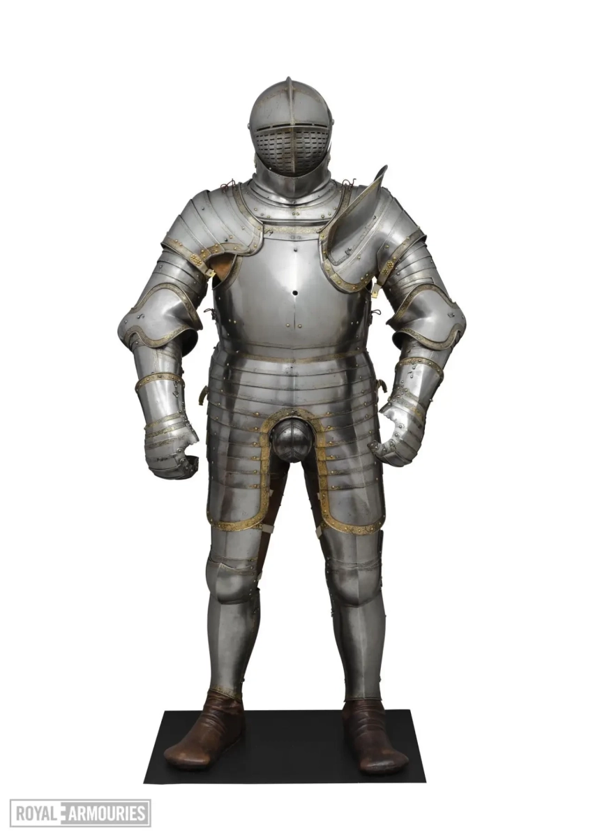 На верхней пластине передней части горжета выгравирована дата «1540», а на полосе по верхнему краю нагрудника в центре изображена коронованная буква «H». Доспехи были привезены из Гринвича в Лондон в 1649 году. Перчатки-«варежки» перевезены из Виндзорского замка в 1914 году.