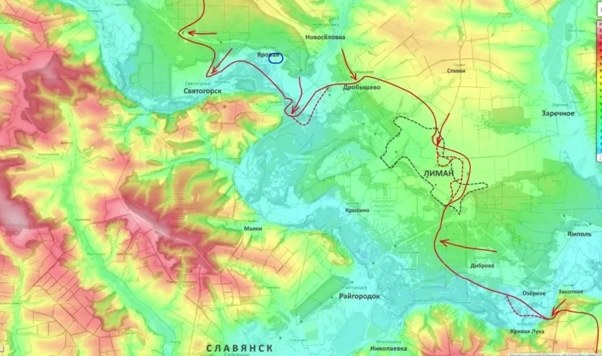 На Лиманском участке 25-я армия вошла в город сразу с нескольких направлений, идёт просачивание штурмовых групп по улицам. В районе Святогорска подразделения 20-й армии пытаются закрепиться, создавая условия для возможного форсирования Северского Донца.