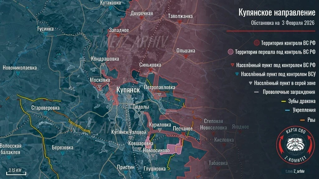 Юрий Подоляка в свежей сводке от 04.02.2026 сообщил о том, что ВС РФ ведут тяжёлые бои за Константиновку