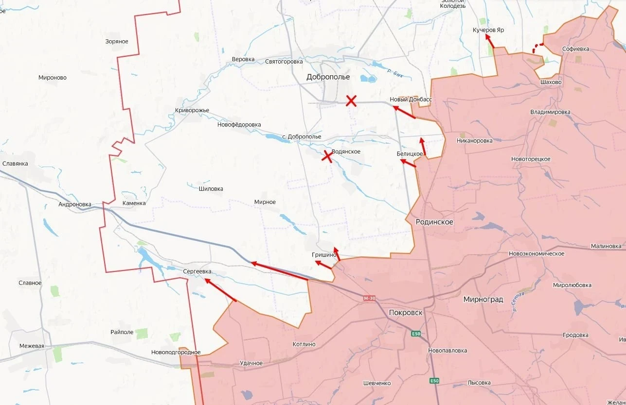На Красноармейском направлении противник предпринимает попытки закрепиться на северных окраинах Молодецкого. Одновременно российские войска наращивают охват Белицкого в районе Добропольского выступа, продвигаясь как южнее города, так и с северного направления вдоль трассы от Дорожного. Ведутся интенсивные бои за Кучеров Яр, где стороны борются за ключевые высоты и логистические узлы.