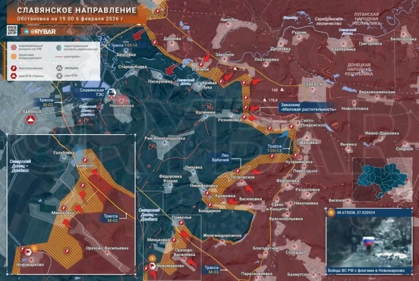 На подступах к Славянску наблюдается позитивная динамика. Российские войска увеличили зону контроля у Миньковки и зачищают фланги Бондарного. Установлен контроль над лесом южнее Озёрного, что открывает путь к заповеднику «Меловая флора» - ключевому рубежу для давления на Кривую Луку.