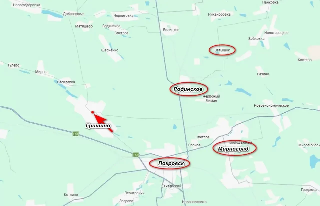 Однако это привело к ослаблению позиций ВСУ под Покровском, чем и воспользовались российские войска, продвинувшись в Гришино. По имеющимся данным, штурмовики ВС РФ заняли центр города и удерживают его, несмотря на контратаки врага. Также бои идут на северо-западной окраине города. Кроме того, заняты часть опорников ВСУ к северу от дороги Покровск - Родинское, нашим удалось продвинуться на 1,5 км.