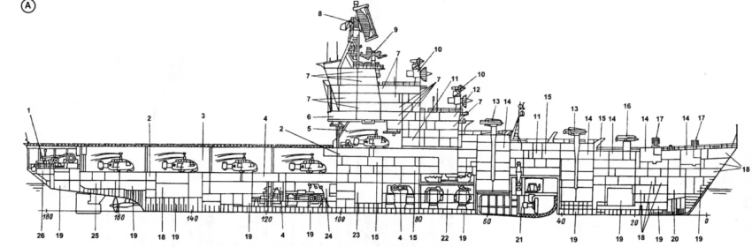 Предложения по установке подкильной ГАС или ЗРК средней/большой дальности в данном случае не рассматриваются: они сразу разрушат концепцию «дешёвого» авианосца.