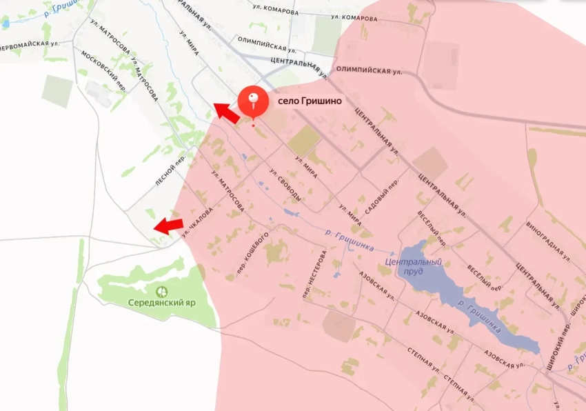 На западе противник отброшен за Середянский яр. На севере ВС РФ достигли окраины Гришино, выйдя к реке, давшей название селу - Гришинка.