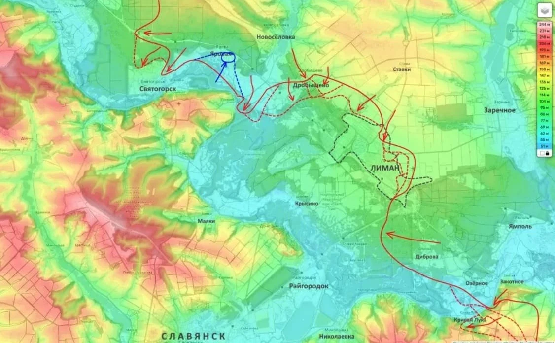 В свою очередь на Лиманском направлении за последние сутки серьёзных изменений зафиксировано не было. Бойцы Вооружённых сил России продолжают зачищать населённый пункт Дробышево и пытаются просачиваться в северные окраины Лимана, опираясь на уже занятые позиции.